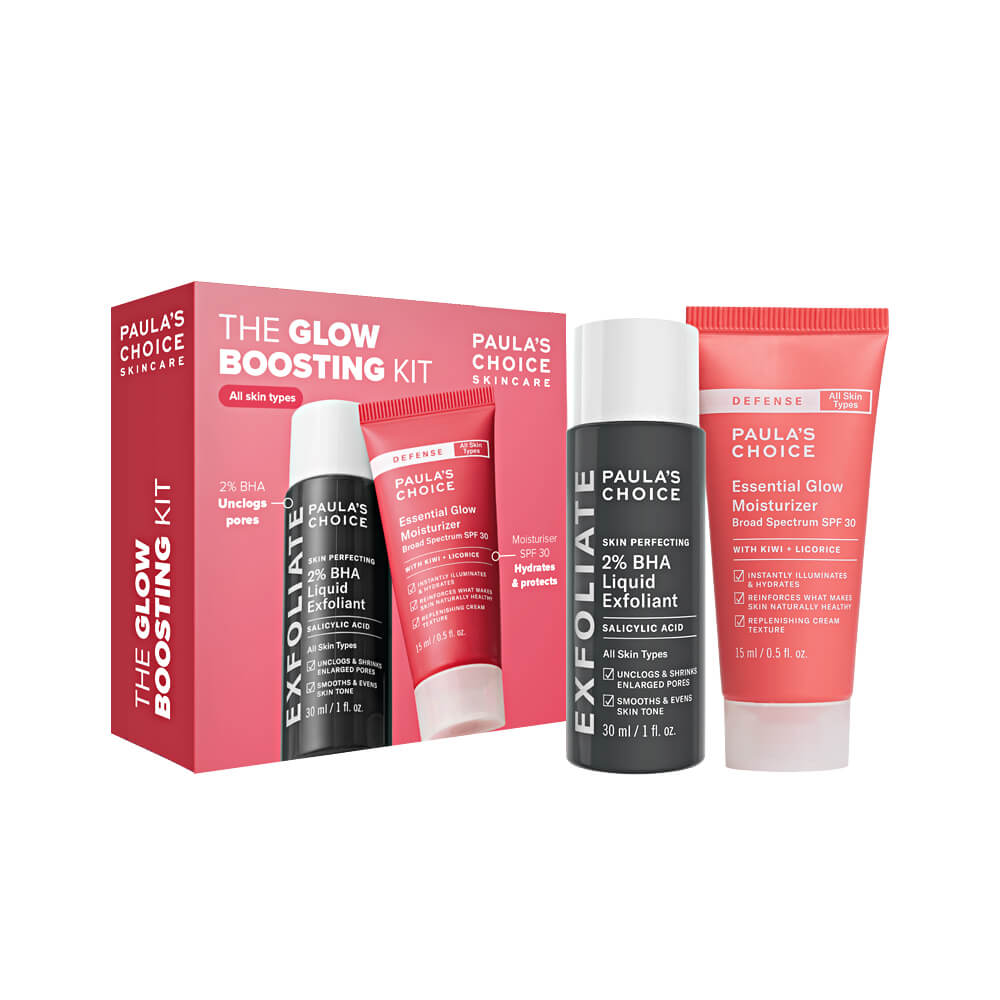 Dezvăluie o piele mai luminoasă și mai netedă cu ajutorul setului The Glow Boosting Kit. Exfoliantul cu 2% acid salicilic estompează porii dilatați și imperfecțiunile, reducând aspectul tern și restabilind luminozitatea naturală, în timp ce crema de zi cu SPF hidratează și oferă protecție zilnică împotriva poluării și razelor UV. Acest duo best-seller uniformizează culoarea pielii și oferă un plus de strălucire naturală.
